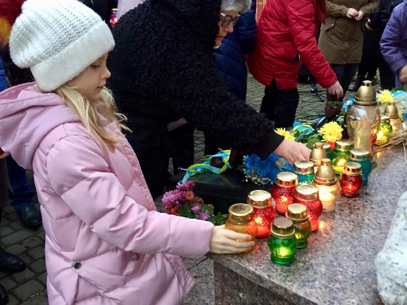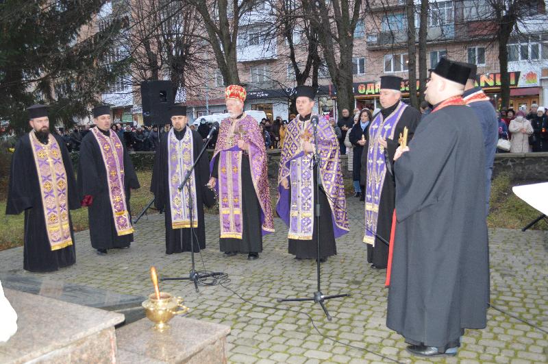 Панахиду за загиблими в роки голодомору відслужили священники українських церков. Учасники мітингу приєдналися до загальнонаціональної хвилини мовчання та запалили свічки скорботи, поклали квіти до підніжжя меморіальної стели.
