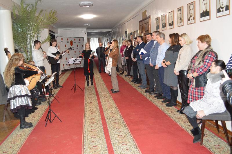 Сьогодні у міській раді колядували сім'ями. Спозаранку завітала надзвичайно талановита родина Михайлюків та Шевченків. Усі діти в ній грають на музичних інструментах та є вихованцями школи мистецтв. У виконанні їх ансамблю “Камертон” звучали колядки, а також були добрі побажання на новий рік.