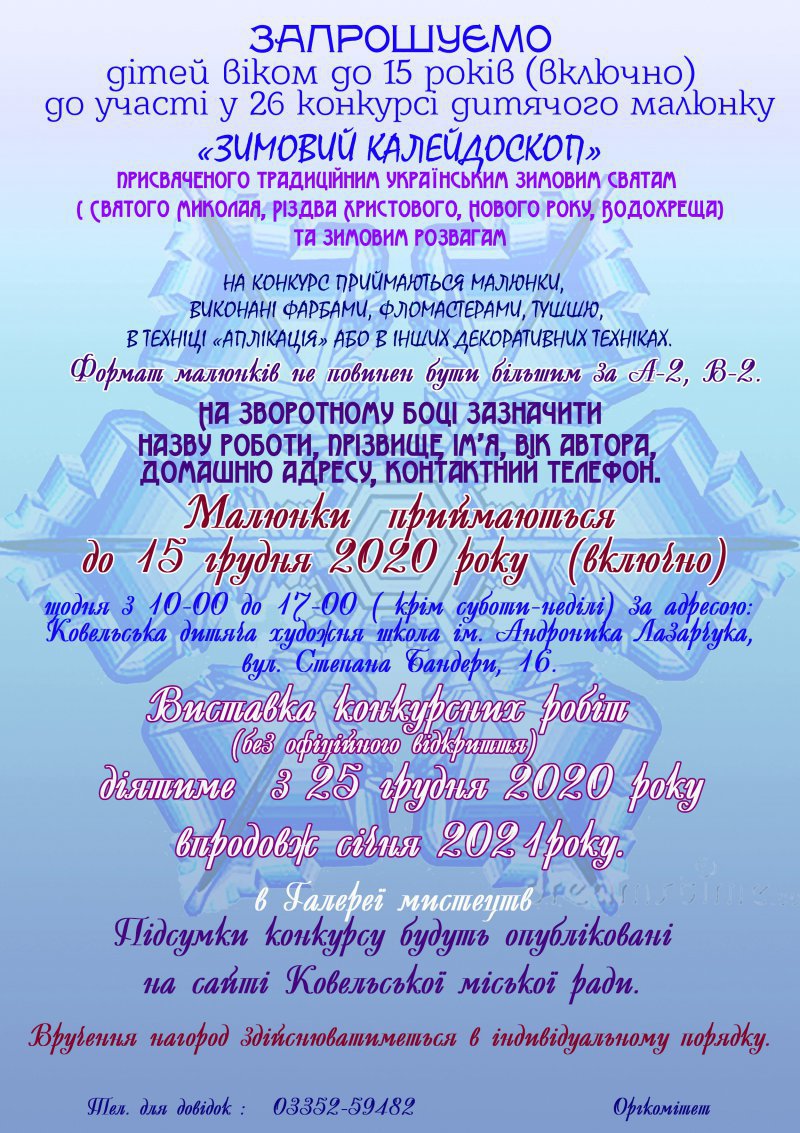 Запрошуємо юних художників до участі у конкурсі “Зимовий калейдоскоп”