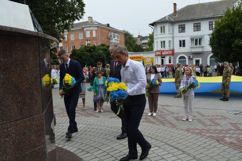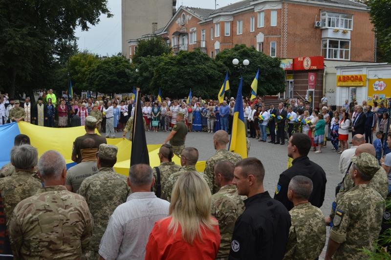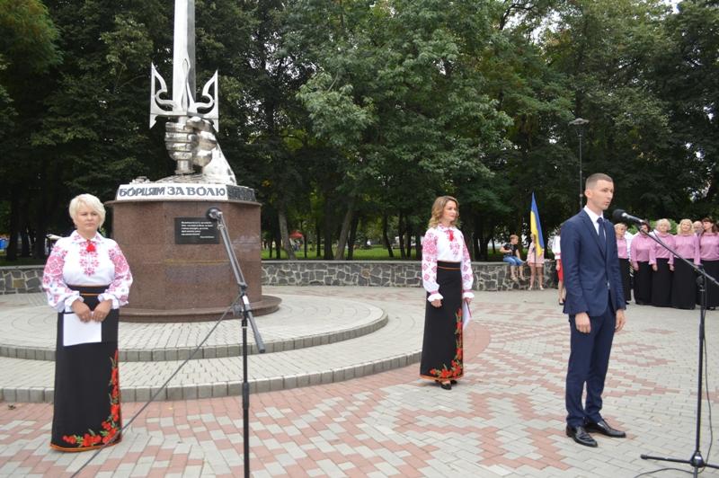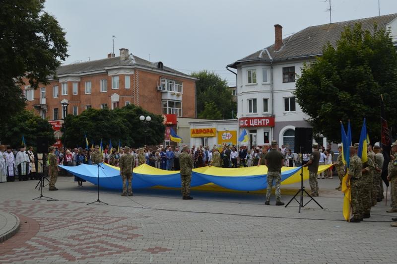 Тут відбулась урочиста церемонія підняття синьо-жовтого стягу. Цю почесну місію здійснили військові частини А-2042, яка дислокується в нашому місті.