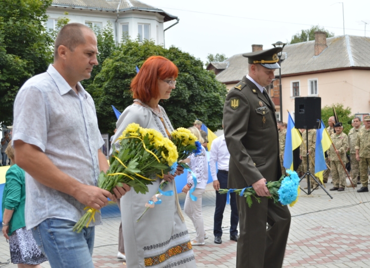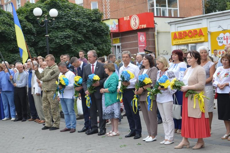 Зі святом присутніх привітав міський голова Ігор Чайка. Він зауважив: «Сьогодні ми зібрались на символічному місці, де у серпні 1990 року вперше замайорів синьо-жовтий стяг над Ковелем. Я добре пам’ятаю ті часи, яким велелюдним було те зібрання. І нещодавно учасникам тих подій, яких уже немає серед нас, було присвоєно звання “Почесний громадянин міста” - Адаму Поляку, Володимиру Осіюку, Марії Хотинській, Аллі Поляковій.