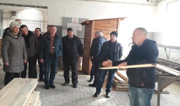 Присутні дізналися, що, зокрема, у столярному цеху виготовляються дошки для підлоги, вагонка, блок-хаус, інші вироби, які в подальшому реалізуються населенню через ЦБМ, а також багатьом фірмам згідно укладених договорів. Також при підприємстві функціонує цех для навчання персоналу та проходження студентами практики.