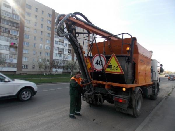 Якщо ж говорити про міські асфальтовані шляхи з інтенсивним рухом автотранспорту, то тут комунальники вирішили використати спеціальну новітню машину для ямкового ремонту струменевим