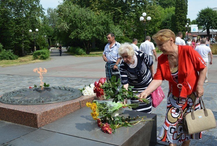 Присутні вшанували пам’ять жертв воєнного лихоліття хвилиною мовчання та поклали квіти до Вічного вогню.