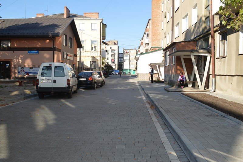 У цьому дворі здійснено реконструкцію інженерних мереж. Також для зручності розширено під’їзну дорогу, яку разом з тротуаром викладено бруківкою. Облаштовано і майданчик для паркування транспортних засобів, якого тут досі не було.