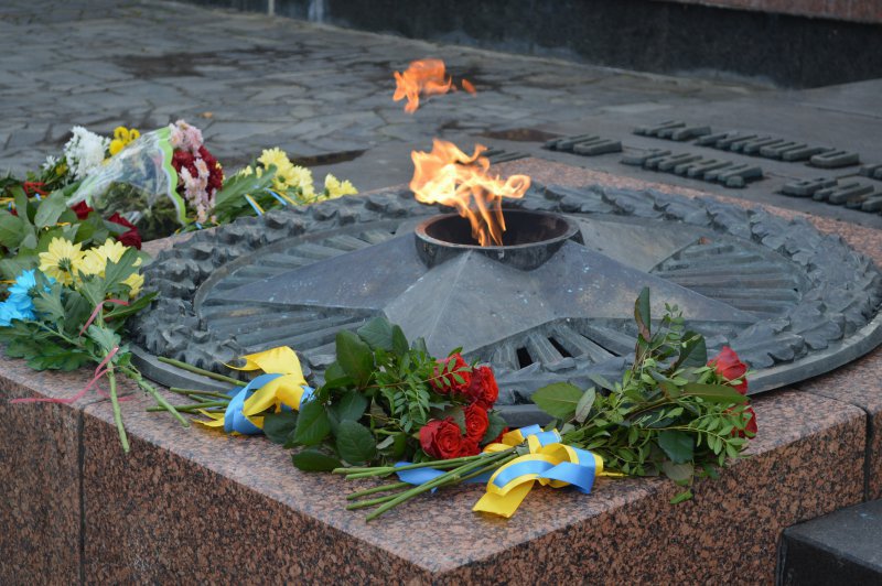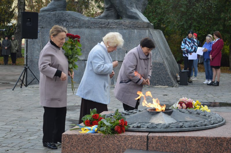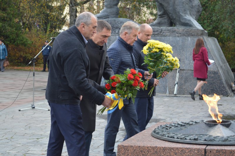 Учасники мітингу вшанували хвилиною мовчання пам'ять полеглих героїв в роки Другої світової війни та у ході воєнних дій на сході нашої держави та поклали квіти до Вічного вогню.