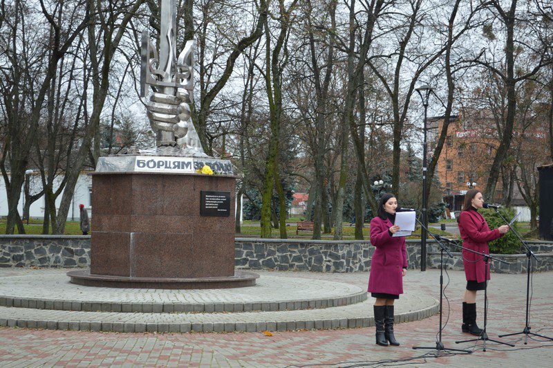 Сьогодні, у День Гідності та Свободи, представники міської та районної влади, установ, підприємств, духовенства, громадських організацій, молодь прийшли до монумента борцям за волю України.