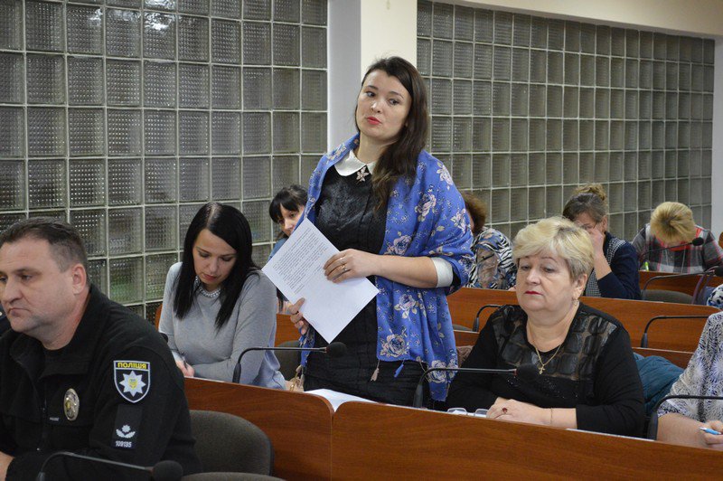 Також детально обговорили тему супроводу родин учасників АТО та надання різного виду послуг переселенцям працівниками центру соціальних служб для сім'ї, дітей та молоді. З цього приводу виступила керівник структурного підрозділу Інна Третяк