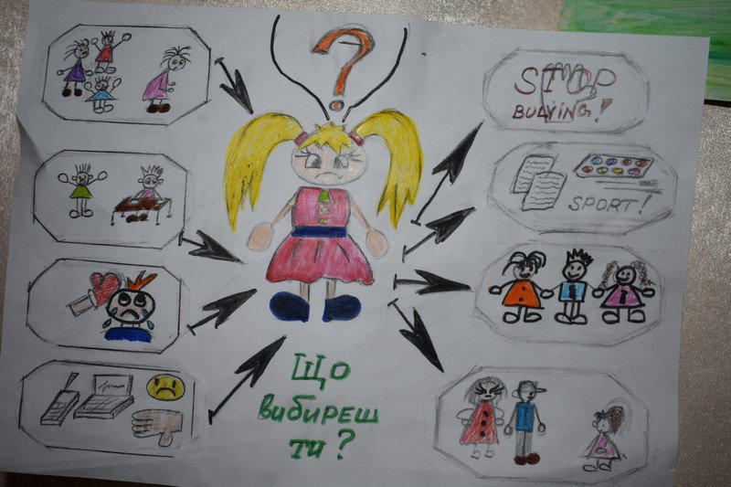 Роботи, які були представлені учнями надзвичайно змістовні та яскраві. Інколи дорослим варто їх переглядати, аби зрозуміти, що діти чітко визначають кордони між любов'ю та злом, вони, як ніхто, відчувають біль та бачать, що таке НАСИЛЬСТВО, своїми очима.…