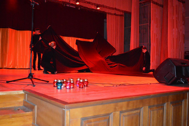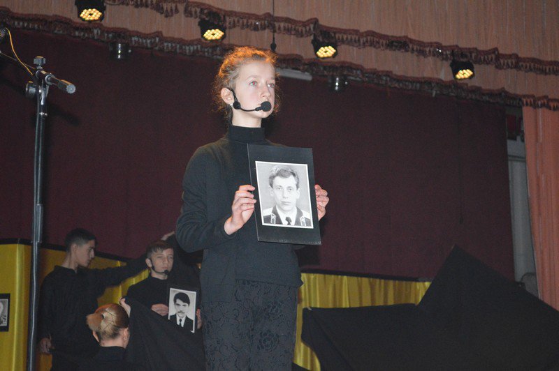 Актори згадали поіменно тих сміливців, які першими вступили у бій зі страшним атомом. На сцену народного дому “Просвіта” театрали винесли їх портрети.