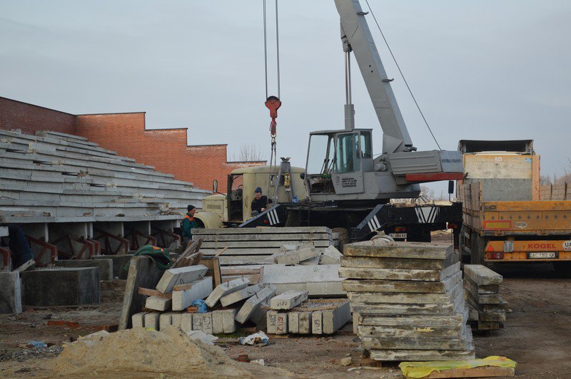 У ці зимові дні не припиняються роботи на стадіоні «Локомотив». Працівники ПрАТ "Луцьксантехмонтаж №536" продовжують заливати залізобетонні конструкції, де будуть влаштовані сидіння.